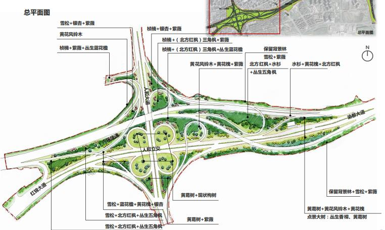 本EPC总承包“交钥匙”工程,,,,,,,包括设计、施工直至完工验收及格及整体移交。。。。。项目以人和立交为中心,,,,,,,渝都大道和内环高速人和段为设计主线,,,,,,,沿线地区整体景观提升面积约为412.5亩。。。。。其中包括蹊径及交通节点绿化品质提升、人行道品质提升、夜景照明灯饰工程及边坡绿化、桥体装饰、文创设施等内容。。。。。