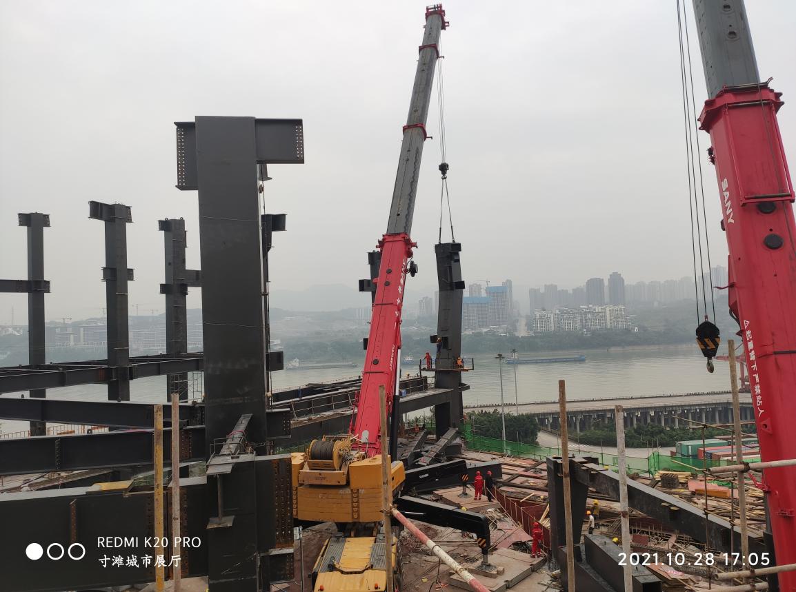 泉源:文/总工办 林彬 图/总工办 李书琦 宣布日期:2021/10/29 【打印此文】10月28日下昼,,,,,,由九游国际建设公司承建的重庆寸滩国际新城展示中心项目接纳600吨吊车吊装60吨重量的钢柱一次性乐成,,,,,,开创了公司大型超重异形钢结构柱吊装施工工艺的又一立异适用新型手艺。。。。。。。。