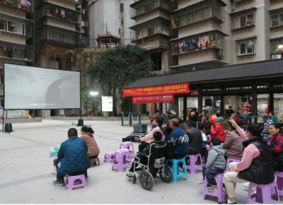 为深入贯彻党的二十大精神,,,,,,,弘扬伟大抗战精神,,,,,,,传承红色基因,,,,,,,引发住民群众的爱国情怀。。。。。。3月17日晚,,,,,,,棉花街社区、渝海物业在都会庭园中庭开展观影运动,,,,,,,组织寓目影片爱国主义影戏《铁道英雄》。。。。。。