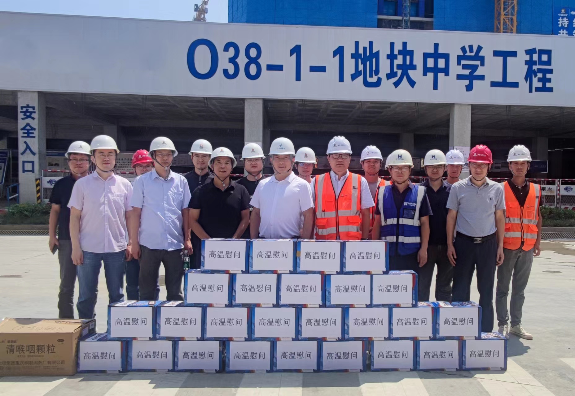 江北嘴集团副总司理夏盛到O38-1-1地块中学工程项目部举行高温慰问