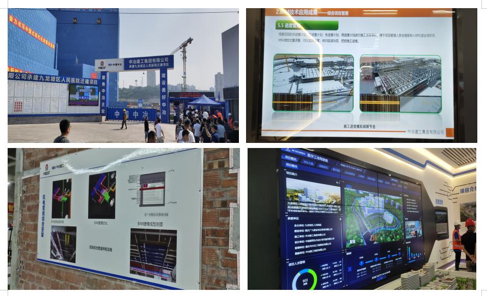 参会职员现场观摩了重庆九龙坡人民医院迁建项目,,,,,,,该项目智能制作内容有BIM+智慧工地平台、质量清静、生产进度、物料、劳务、塔机、视频、智慧展厅、AL视频等监测和监控系统应用,,,,,,,减轻了治理职员50%事情量,,,,,,,实现了智能治理,,,,,,,为工程保驾护航。。。。。