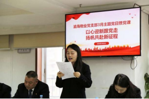 薪火相传、扬帆启航,,,,,,为进一步增强支部凝聚力和向心力,,,,,,提升党员的政治声誉感、组织归属感和事业使命感。。。。。。。克日,,,,,,渝海物业党支部召开3月主题党日暨党课,,,,,,聚会由党支部书记、渝海物业董事长叶强主持,,,,,,支部全体党员、新转入党员加入。。。。。。。本次主题党日内容富厚,,,,,,学习了《党史学习教育条例》和习近平系列主要讲话,,,,,,支部委员彭洪以“敢继续 有作为”为全体参会职员上党课,,,,,,还举行了新党员接待仪式。。。。。。。