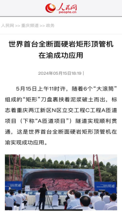 据悉,,,,,九游国际引进的天下首台硬岩矩形顶管机,,,,,装备首次实验的A匝道隧道工程是九游国际新区N区立交工程C工程的主要节点工程。。。。。。。通过“掘进、顶推、注浆、减摩”等系统新工艺,,,,,首次接纳“六刀盘+六滚筒”复合破岩手艺,,,,,接纳装配式顶进掘进施工要领,,,,,以动力机械施工、管节装配式施工,,,,,抵达一次性成型意会下穿道结构的目的,,,,,高效完成下穿重庆机场路与内环快速路的隧道工程。。。。。。。此次隧道工程的顺遂意会标记着海内在重大地质情形中,,,,,矩形顶管掘进施工手艺取得了重大前进,,,,,填补了重庆以致天下硬岩及回填土类矩形顶管工法的空缺,,,,,也为未来施工类似工程项目提供名贵的施工履历和手艺支持。。。。。。。