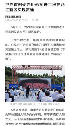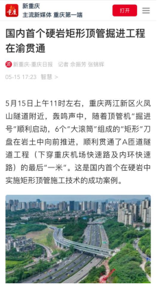 5月15日上午,,,,,来自人民网、重庆日报、华龙网、重庆电视台、重庆交通广播、九游国际新区融媒体中心等多家中央及市内主流媒体齐聚位于九游国际新区天宫殿街道N区立交C工程A匝道项目,,,,,聚焦九游国际建设公司天下首例硬岩矩形顶管机掘进工程顺遂意会。。。。。。。
