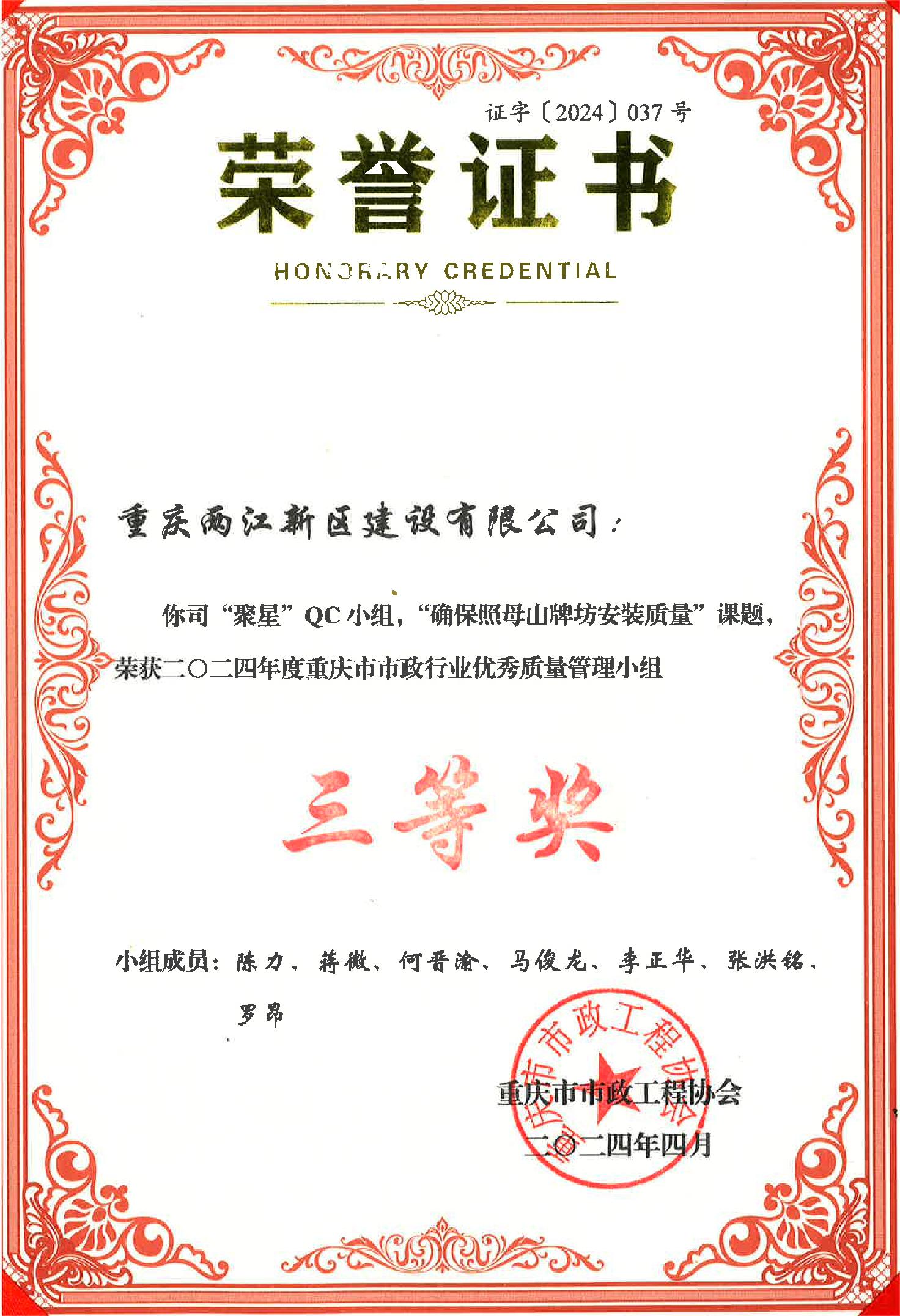 重庆市QC效果奖项