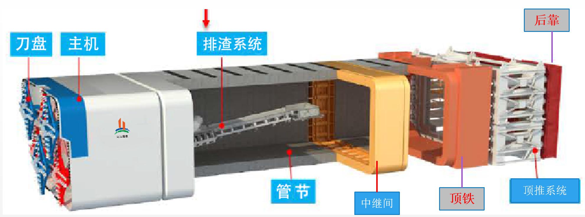1.首次在通例矩形顶管机基础上,,,,,,通过刀盘、滚筒等的手艺立异,,,,,,形成了顺应复合地层浅埋大断面矩形顶管的装备。。。。。。顶管机前端设计接纳小扰动的破岩滚筒装置,,,,,,通过设置相顺应螺旋运送机数目和合理位置,,,,,,解决了螺旋运送机按通例设置在刀盘底部盲区位置无法破除岩层的难题,,,,,,实现了上软下硬复合地层矩形隧道全断面开挖。。。。。。