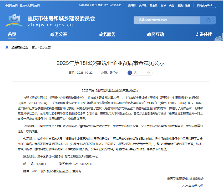 凭证公示内容,,,,,本次资质审查严酷遵照《行政允许法》《修建业企业资质治理划定》及配套政策文件,,,,,经企业申报、区县主管部分意见征询、市住建委整体会审等多重程序,,,,,最终形成审查意见。。。。。公示期为2025年10月22日至10月31日,,,,,时代接受社会监视。。。。。若公示效果无异议,,,,,企业将正式获得响应资质认证,,,,,为后续加入工程建设市场涤讪坚实基础。。。。。